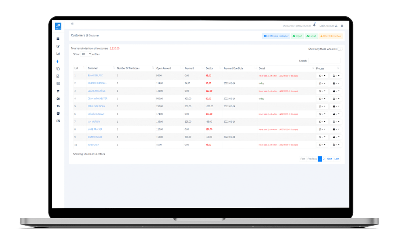 You can track your customers' open account shopping, see what you bought on what date and when they last visited your store and made a payment or transaction.